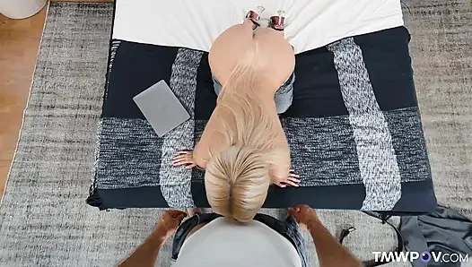 Mükemmel büyük memeli ateşli sarışın sağlam sert bir yarak alıyor